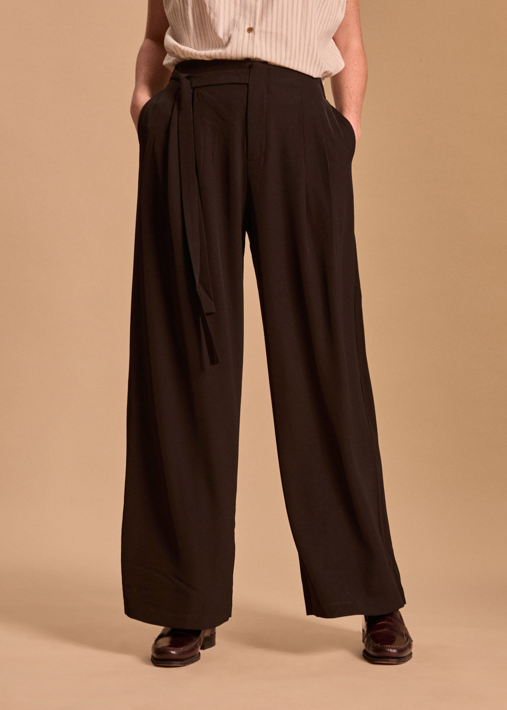 se distingue par sa coupe ample et majestueuse, dynamisée par des pinces délicatement travaillées qui lui confèrent un tombé d'une fluidité remarquable. Dans sa teinte Charbon, profonde et intense, il incarne une sophistication discrète qui se prête à toutes les audaces vestimentaires. Que vous le portiez pour une réunion professionnelle ou pour une escapade citadine, il dessine une silhouette contemporaine et raffinée. C'est l'incarnation de notre vision d'une mode intemporelle : des lignes nettes, des matières de choix, pour une aisance qui ne sacrifie jamais l'allure. Offrez-vous l'assurance d'une démarche élégante et d'un confort sans faille.