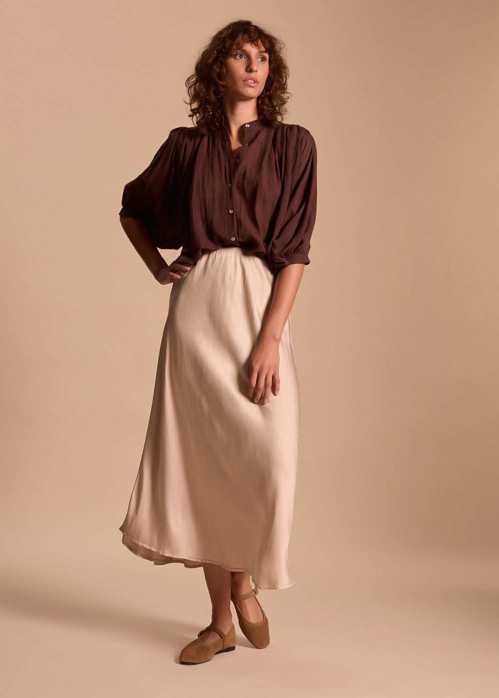 - Pour la fin d’été, associez la jupe YANN à un débardeur en maille fine et des sandales pour une allure bohème et solaire.