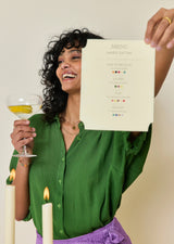 Yanne wears the ZOLA shirt with theDADOU skirt.