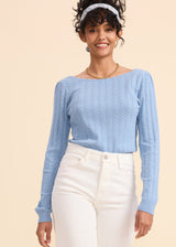 L'association de la maille ajourée et du décolleté dans le dos.