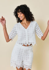 Yanne wears the WINNIE shirt with the NADETTE shorts.