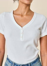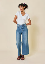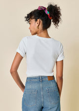 Yanne wears the DIEGO V-neck T-Shirt with Jaime Straight Jeans