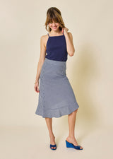 Gabriella wears the AMINATA Cross Back Tank with the SAKURA Skirt and heels.
