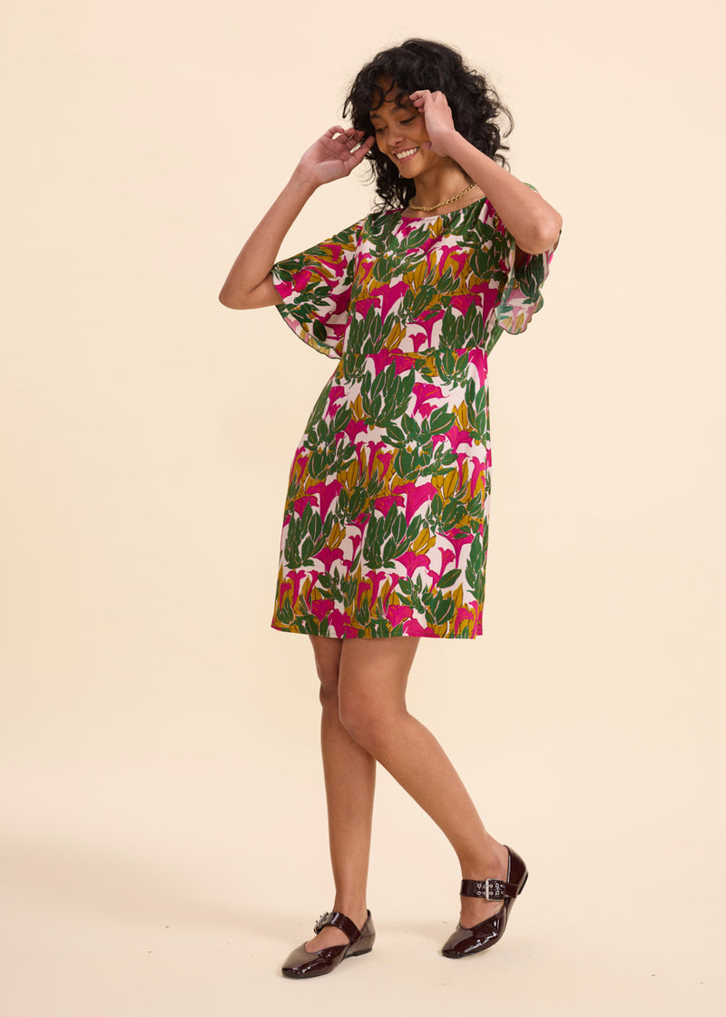 Robes aériennes, jupes dansantes et chemises délicates se parent d’imprimés "signature" : Fiore, Mini-Flowers ou Clochette, comme un hommage florale à la douceur des jours heureux.