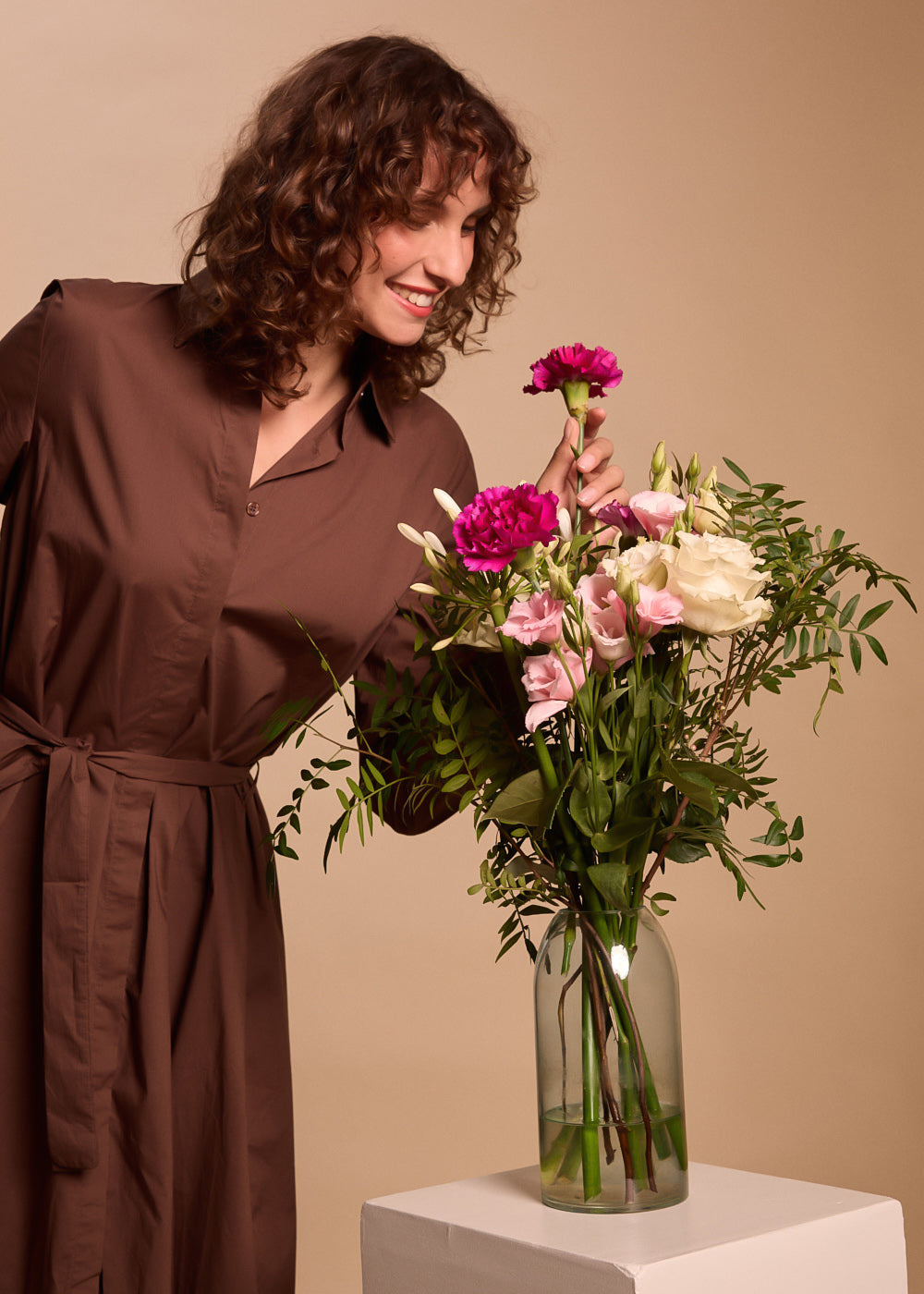 - À la fin de l’été, portez la robe GAETAN avec des sandales plates et un panier en raphia pour une allure fraîche et décontractée.